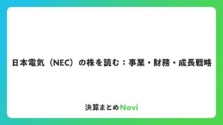 日本電気(NEC)の株を読む:事業・財務・成長戦略 日本電気株式会社(以下、NEC)は、長い歴史を持つ大手企業として、株式市場で注目を集めています。この記事では、NECの株に関する一般的な情報を、企業概要、事業内容、財務状況、組織体制などの観点から詳しく解説します。投... コラム: 2026.02.07 コラム