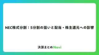 NEC株式分割:5分割の狙いと配当・株主還元への影響 日本電気株式会社(以下、NEC)は、情報通信技術を基盤とした多様な事業を展開する大手企業です。この記事では、NECの株式分割に焦点を当て、その概要、実施背景、株主還元の方針、過去の事例、そして株式分割がもたらす一般的... コラム: 2026.02.06 コラム
