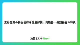 三谷産業の株主優待を徹底解説:陶磁器・長期保有の特典 株式投資において、企業から株主に対して提供される優待制度は、多くの投資家にとって関心の高いテーマです。今回は、三谷産業が提供する株主優待制度について、その内容や特徴を詳しく解説していきます。三谷産業は首都圏・北陸・ベトナムを主要拠点として、... コラム: 2026.02.15 コラム