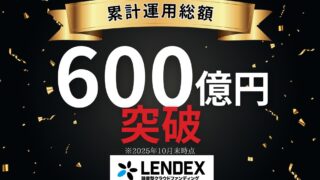 LENDEX:累計運用総額600億円突破!記念して公式Xフォロー&リポストキャンペーン開催! ニュースの要約 融資型クラウドファンディング「LENDEX」が累計運用総額600億円を突破 記念して「公式Xフォロー&リポストキャンペーン」を実施 抽選で10名にAmazonギフト券1,000円分を贈呈概要融資型クラウドファンディング... ニュース: 2025.11.19 ニュース
