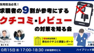PR TIMES:採用担当必見!求職者の9割が参考にする口コミ、レビュー対策について考える会 ニュースの要約 求職者の9割がネット上の口コミやレビューを参考にしている 中小企業の評判を改善し、売上や採用に直結する対策を学べるイベントが開催される ネット上の低評価レビューへの対応方法や信頼を回復するための情報発信について解説され... ニュース: 2025.10.04 ニュース