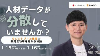 タレントプール:人材データが分散していませんか?採用成功率を高める秘訣実践ポイント【1月15日・16日開催】 ニュースの要約 採用における候補者情報の散在や活用不足への課題 タレントプール構築の重要性と具体的な進め方を解説 人材管理・採用支援ソリューション「aloop」を活用したデータ活用の具体例を紹介概要株式会社パソナが、人事・... ニュース: 2026.01.08 ニュース