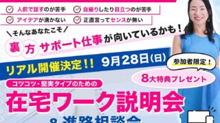 在宅ワークセミナー:顔出し・SNS集客なしで自分の強みを活かす働き方を学ぶ ニュースの要約 経営者歴22年の土岐あい氏主宰の在宅ワークセミナーが第2回リアル開催 顔出しやSNS集客に頼らず、自分の強みを活かした在宅ワークの実現を目指す 参加者にはTPS(チームビジネスプロフェッショナル養成スクール)への入学者... ニュース: 2025.10.04 ニュース