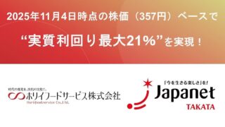 株主優待クーポン:外食業界初!!ホリイフードサービス×ジャパネットが導入 ニュースの要約 外食業界初、ホリイフードサービスとジャパネットグループが株主優待制度を連携 ジャパネットクーポンかお食事券の2つから株主が選択可能 幅広い株主のライフスタイルに寄り添う新しい株主優待の形を提案概要関東を中心... ニュース: 2025.11.04 ニュース