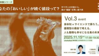 Lively合同会社:「身体知×サイエンスで探ろう。循環型の鶏舎で考える、人も動物も幸せになる食の未来」共同開催 ニュースの要約 Lively合同会社と IDEAS FOR GOODが共同開催する「身体知×サイエンスで探ろう。循環型の鶏舎で考える、人も動物も幸せになる食の未来」イベントの開催 東京農工大学の次世代型畜産モデル鶏舎「Unshelled... ニュース: 2025.11.01 ニュース