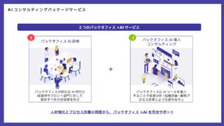 バックオフィス×AI変革支援プログラム:株式会社コンダクト、バックオフィス発のAI変革を加速 ニュースの要約 株式会社コンダクトが、バックオフィス向けのAI教育×導入コンサルティングサービスを新規展開 バックオフィスでのAI活用を促進し、ルーティン業務の自動化により戦略付加価値業務への人的リソース再配分を支援 バックオフィス向... ニュース: 2025.11.01 ニュース