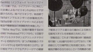 live commerce japanライバー京極琉、健康産業新聞に掲載 ニュースの要約 美容師でTikTokインフルエンサーの京極琉が、展示会「Diet & Beauty Fair 2025」のライブコマースで3日間で約2,700万円を売り上げた 京極琉の取り組みが業界専門紙「健康産業新聞」に大きく取り上げ... ニュース: 2025.10.04 ニュース