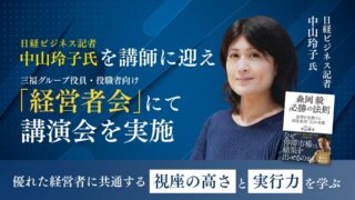三福グループ:日経ビジネス副編集長・中山玲子氏を講師に迎え ニュースの要約 日経ビジネス副編集長の中山玲子氏が三福グループの役員・役職者を対象に講演を行った 優れた経営者に共通する「視野の広さ」と「視座の高さ」について解説 森岡毅氏の経営手法などを事例に、成熟市場での勝ち筋やチャレンジ、実行力... ニュース: 2025.10.28 ニュース