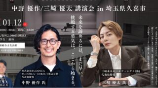中野優作 / 三崎優太 講演会 in 埼玉県久喜市:成人の日に開催決定 ニュースの要約 中野優作氏と三崎優太氏による講演会が、2026年1月12日の成人の日に埼玉県久喜市で開催されることが決定した。 この講演会では、二人の経営者がそれぞれの挫折と再起の経験を語り、新成人や学生、会社員、経営者らに向けて「挑戦... ニュース: 2025.10.28 ニュース