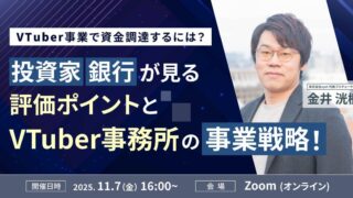 VTuber事業:【11月7日(金)16時から】VTuber事業における資金調達に向けた戦略ウェビナーを開催 ニュースの要約 VTuber事業における資金調達の戦略をウェビナーで解説 投資家や銀行が見るVTuber事業の評価ポイントを紹介 資金調達が難しいVTuber事務所に共通する「壁」を明確化概要VTuber、IPコンテンツを通して日本と... ニュース: 2025.10.27 ニュース