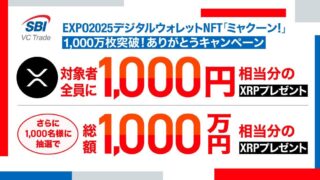 「ミャクーン!」:EXPO2025デジタルウォレットNFT、1,000万枚突破! ありがとうキャンペーン ニュースの要約 EXPO2025デジタルウォレットNFT「ミャクーン!」の発行枚数が1,000万枚を突破 対象者全員に1,000円相当分のXRPをプレゼント 1,000名様に抽選で総額1,000万円相当分のXRPをプレゼント概要SBI... ニュース: 2025.10.26 ニュース