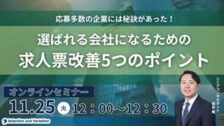 求人票改善:応募多数の企業には秘訣があった!選ばれる会社になるための5つのポイント ニュースの要約 応募が集まる企業には、求人票の"伝え方"に工夫がある 企業が魅力を正しく伝えることで、求職者の行動が変わる 30分のセミナーで、明日から実践できるコツを学べる概要組織・人事コンサルティングファームのセレクションアンドバ... ニュース: 2025.10.26 ニュース