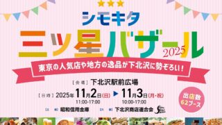 シモキタ三ツ星バザール2025:各地の銘品が下北沢に勢ぞろい、11月2日(日)、3日(月・祝)に開催!! ニュースの要約 11月2日(日)、3日(月・祝)の2日間にわたり「シモキタ三ツ星バザール2025」が開催される 下北沢の人気店や地方の特産品が一堂に集まる大イベント 来場者全員に粗品プレゼントなど、様々な企画も実施予定概要昭和信用金庫... ニュース: 2025.10.25 ニュース