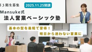 「Mansuke式法人営業ベーシック塾」:営業人材の空洞化に挑む、女性CEOが法人営業現場で直面し続けた思いを型にした再現性ある営業組織の構築 ニュースの要約 営業人材の空洞化に直面し続けた女性CEOが、再現性ある営業組織を構築する「Mansuke式法人営業ベーシック塾」を開講 属人営業を仕組みに変え、チームでの売上を底上げする法人営業の基本の型を習得できるプログラム トップ... ニュース: 2025.10.23 ニュース