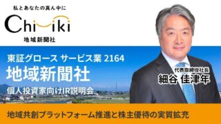 「FISCO TV」:地域新聞社の「個人投資家向けIR説明会」動画を公開 ニュースの要約 地域新聞社が「FISCO TV」で個人投資家向けIR会社説明会の動画を公開しました。 説明会では、新しい人材紹介事業や地域共創プラットフォームなどの新ビジネスモデルについて紹介しました。 地域新聞社が持つ独... ニュース: 2025.10.22 ニュース