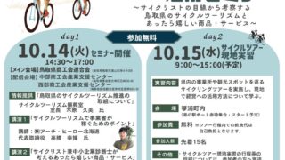 サイクルツーリズム:新たな売上獲得を目指す「サイクルツーリズム」活用セミナー ~サイクリスト目線から考察する鳥取県のサイクルツーリズムとあったら嬉しい商品・サービス~参加者募集! ニュースの要約 鳥取県商工会連合会が「サイクルツーリズム」活用セミナーを初開催 サイクリストに向けた新たな商品・サービスの開発を目的とする 県内事業者の売上・収益向上を目指す概要鳥取県商工会連合会は、人口減少に起因する県内の将来的な市... ニュース: 2025.10.02 ニュース