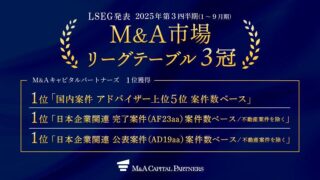 M&Aキャピタルパートナーズ:「2025年第3四半期M&A市場リーグテーブル」3冠を達成、M&A仲介専業企業で”唯一”ランクイン ニュースの要約 M&Aキャピタルパートナーズが、2025年第3四半期のM&A市場リーグテーブルで3部門で1位を獲得し、3冠を達成した M&A仲介専業企業で唯一ランクインし、2年連続での1位獲得となった 同社は2025年10月に創業20... ニュース: 2025.10.20 ニュース