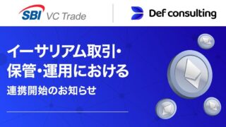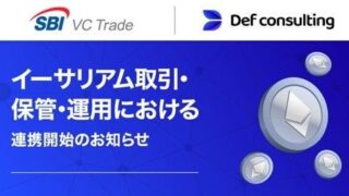 【SBI VCトレード株式会社との業務連携に関するお知らせ】株式会社Def consulting ニュースの要約 株式会社Def consultingとSBI VCトレード株式会社が業務連携を開始 イーサリアム(ETH)の取得・保管・運用における各種サポートサービスを提供 国内リーディングカンパニーとの連携で、イーサリアム(ETH... ニュース: 2025.10.18 ニュース