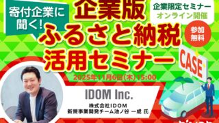 寄付企業が語る実践事例セミナー:11/6(水)開催のお知らせ ニュースの要約 企業版ふるさと納税を活用した寄付企業の実践事例を紹介するオンラインセミナーを11月6日(水)に開催する 株式会社IDOMの池ノ谷一成氏がゲストとして登壇し、寄付の背景や想い、得られた学びなどを語る 企業の社会的貢献と地... ニュース: 2025.10.17 ニュース