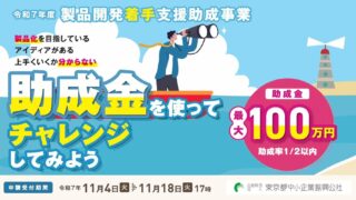 製品化支援助成金:最大100万円の助成金で製品化を目指すアイディアを検討できる、創業予定者も対象 ニュースの要約最大100万円の助成金を受け取れる「製品開発着手支援助成事業」を東京都が実施創業予定者も対象で、製品開発前の技術検討費用を助成市場調査費用も最大25万円まで助成対象となる概要東京都中小企業振興公社は、新たな製品・技術開発を促進... ニュース: 2025.10.13 ニュース