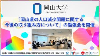 岡山大学:「岡山県の人口減少問題に関する今後の取り組み方について」の勉強会を開催 ニュースの要約 岡山大学が中心となり、「岡山県の人口減少問題に関する今後の取り組み方について」の勉強会を開催しました。 勉強会では、各団体が取り組む人口減少対策について情報共有や意見交換が行われました。 今後も岡山大学は地域との連携を... ニュース: 2025.09.28 ニュース