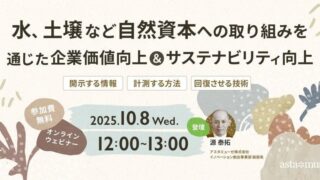 アスタミューゼ株式会社:企業のサステナビリティ関係者向け無料ウェビナー「水、土壌など自然資本への取り組みを通じた企業価値向上&サステナビリティ向上 ~開示する情報・計測する方法・回復させる技術~」を再開催 ニュースの要約 企業のサステナビリティに関する新たな情報開示指針「企業サステナビリティ報告指令(CSRD)」が欧州議会及び欧州理事会で採択されたことを受け、多くの企業がその対応に追われていること。 企業の水資源・海洋資源、生物多様性と生... ニュース: 2025.09.26 ニュース