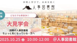 人事図書館:「ちょっと気になる…」を解消!10月25日(土)の参加無料見学会開催@東京 人形町 ニュースの要約 人事図書館が10月25日(土)に「ちょっと気になる...」を解消する大見学会を開催 参加費無料で、人事図書館の活動内容や雰囲気を体験できる 人事に携わる方や人や組織に関心のある方なら誰でも参加可能概要株式会社Trust... ニュース: 2025.09.26 ニュース
