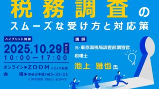 税務調査対策セミナー:元・調査官が伝授する税務調査の最新動向と実務対応 ニュースの要約 元・調査官が税務調査の根拠から着手・展開・終結までを体系的に解説 「AI・ビッグデータ」「電子帳簿保存法」「業種別リスク」など最新テーマを網羅 会場・オンラインいずれからも参加可能なセミナーを開催概要一般社団法人日本経... ニュース: 2025.09.24 ニュース