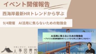 人事図書館:AI活用勉強会を開催。米国HRトレンドを手がかりに、流行に左右されない本質を探求。 ニュースの要約 株式会社Trustyyleが「人事図書館」にて「AI活用に焦らないための勉強会」を開催したことが報告されています。 米国HR領域におけるAI最前線に関する講演が行われ、参加者からは「データ蓄積の重要性」などの気づきが得ら... ニュース: 2025.09.24 ニュース