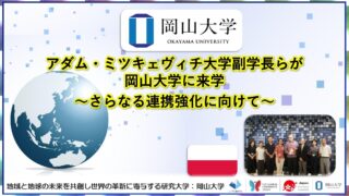 岡山大学:アダム・ミツキェヴィチ大学副学長らが岡山大学に来学~さらなる連携強化に向けて~ ニュースの要約ポーランドのアダム・ミツキェヴィチ大学の副学長とほかの教授が岡山大学を訪問し、今後の連携強化について意見交換を行った。両大学は学生交流に加え、研究交流や教員交流の強化に向けて検討することを確認した。岡山大学は国際化を推進してお... ニュース: 2025.07.18 ニュース