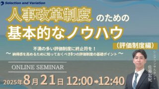 セレクションアンドバリエーション株式会社:不満の多い評価制度に終止符を!納得感を高めるために知っておくべき5つの評価制度の基礎ポイント ニュースの要約不満の多い評価制度に終止符を打ち、従業員の納得感を高めることが目的評価制度の目的や基礎知識、設計ポイントなど5つのポイントを解説人事制度改革のノウハウを体系的に学べるセミナーを開催概要組織・人事コンサルティングファームのセレク... ニュース: 2025.07.16 ニュース