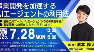 「AIエージェントの利用法」:株式会社TIMEWELLがオンラインで「事業開発を加速するAIエージェントの利用法」を開催決定! ニュースの要約株式会社TIMEWELLが、「事業開発を加速するAIエージェントの利用法」のオンラインセミナーを開催すると発表しました。生成AIの進化によって、企画立案から市場調査、プロダクト開発まで事業開発のあらゆる工程が変化していることを... ニュース: 2025.07.16 ニュース