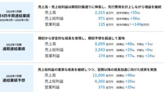 ツクルバ:2025年7月期 通期決算を発表 売上高、売上総利益、営業利益が過去最高値を更新 2026年7月期は売総20%増、営利35%増を見込む ニュースの要約 2025年7月期の売上高、売上総利益、営業利益が過去最高値を更新 2026年7月期は売上総利益20%増、営業利益35%増を見込む カウカモ工務店を新設し、バリューチェーンの拡張を目指す概要株式会社ツクルバは、2025年... ニュース: 2025.09.15 ニュース