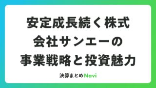 安定成長続く株式会社サンエーの事業戦略と投資魅力 株式会社サンエーは、沖縄を拠点に食料品・衣料品・住居関連用品の小売事業を展開する企業で、株式投資家にとって安定した配当利回りと堅調な業績が魅力です。創業以来70年以上にわたり地域のお客様に支持され、連結営業収益が2,371億円を超える規模を... 決算書: 2026.03.04 決算書