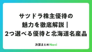 サツドラ株主優待の魅力を徹底解説|2つ選べる優待と北海道名産品 北海道を地盤とするドラッグストアチェーンを展開するサツドラホールディングス(証券コード3544)は、個人投資家から人気を集める銘柄のひとつです。その魅力のひとつがユニークな株主優待制度で、北海道らしさを前面に押し出した名産品や、デジタルギフ... 決算書: 2026.04.19 決算書