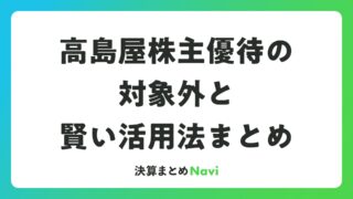 高島屋株主優待の対象外と賢い活用法まとめ 高島屋の株主優待は、10%割引の優待カードが魅力的な制度ですが、一部の商品や店舗、ブランドが対象外となる点に注意が必要です。この記事では、株式投資家向けに高島屋株主優待の対象外項目を詳しくまとめ、対象外を避けた効果的な活用術を紹介します。優... 決算書: 2026.04.14 決算書