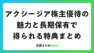 アクシージア株主優待の魅力と長期保有で得られる特典まとめ 株式投資家にとって、株主優待は配当金とは異なる魅力的なリターンとして注目されています。特に、化粧品や美容関連商品を提供する企業からの優待は、日常生活で活用しやすく人気です。アクシージア(4936)は、そんな投資家にぴったりの銘柄で、自社公式... 決算書: 2026.04.14 決算書