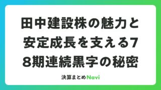 田中建設株の魅力と安定成長を支える78期連続黒字の秘密 田中建設は、創業100年を超える歴史を持つ総合建設会社で、堅実な経営と多角的な事業展開が株主価値向上の基盤となっています。東京多摩地区を中心に事業を拡大し、不動産事業とのシナジーを活かした成長が投資家に注目されています。田中建設の事業概要と... 決算書: 2026.02.23 決算書