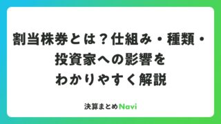 割当株券とは?仕組み・種類・投資家への影響をわかりやすく解説 証券会社から突然「割当株券のお知らせ」という通知が届いて、戸惑った経験はないでしょうか。普段から株式投資を行っている方でも、割当株券という言葉に馴染みが薄い方は少なくありません。しかし、保有銘柄の企業が増資や新株予約権の発行を実施する際に、... 決算書: 2026.04.18 決算書
