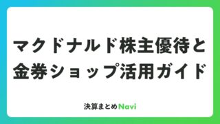 マクドナルド株主優待と金券ショップ活用ガイド 日本マクドナルドホールディングス(証券コード:2702)の株主優待は、数ある上場企業の優待制度の中でも特に人気が高い銘柄として知られています。普段からマクドナルドを利用する方にとっては実用性が抜群であり、さらに金券ショップでの換金ルートも確... 決算書: 2026.04.18 決算書