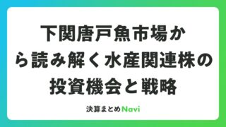 下関唐戸魚市場から読み解く水産関連株の投資機会と戦略 日本有数の水産都市として知られる山口県下関市。その中心で半世紀以上にわたり水産流通を支えてきたのが下関唐戸魚市場株式会社です。一見、株式投資とは縁遠いように思える地方の漁港企業ですが、実はこの存在を起点に考えると、水産業全体の構造変化や関連... 決算書: 2026.04.16 決算書