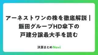 アーネストワンの株を徹底解説|飯田グループHD傘下の戸建分譲最大手を読む アーネストワンとはどんな会社か株式会社アーネストワンは、首都圏を中心に分譲戸建住宅・分譲マンション・注文住宅請負などを手掛ける住宅メーカーです。本社は東京都西東京市にあり、現在は飯田グループホールディングス株式会社の完全子会社として事業を展... 決算書: 2026.04.17 決算書