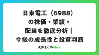 日東電工(6988)の株価・業績・配当を徹底分析|今後の成長性と投資判断 日東電工(6988)とは?企業概要と事業の全体像日東電工株式会社(証券コード:6988)は、東証プライム市場に上場するグローバル総合素材メーカーです。1918年の創業以来、粘着テープの技術を起点に事業領域を拡大し、現在では電子部品材料や医薬... 決算書: 2026.04.15 決算書
