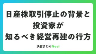 日産株取引停止の背景と投資家が知るべき経営再建の行方 日産株が取引停止になった経緯とは日産自動車(証券コード:7201)の株式は、2024年から2025年にかけて2度にわたり東京証券取引所で売買が一時停止される事態となりました。いずれもホンダとの経営統合に関する重大な報道が原因であり、投資家に... 決算書: 2026.04.15 決算書