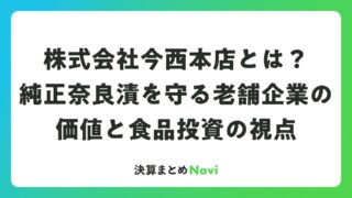 株式会社今西本店とは?純正奈良漬を守る老舗企業の価値と食品投資の視点 「株 今西 本店」とはどんな企業か「株 今西 本店」と検索する人の多くは、株式会社今西本店という企業について知りたいのではないでしょうか。株式会社今西本店は、奈良県奈良市上三条町31番地に本社を構える老舗食品メーカーです。事業の中心は純正奈... 決算書: 2026.04.14 決算書
