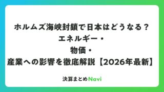 ホルムズ海峡封鎖で日本はどうなる?エネルギー・物価・産業への影響を徹底解説【2026年最新】 ホルムズ海峡封鎖が日本に与える影響の全体像2026年2月末、米国・イスラエルによるイラン攻撃を契機に、ホルムズ海峡は事実上の封鎖状態に陥りました。日本は原油輸入の約95%を中東に依存し、そのほぼすべてがホルムズ海峡を経由しています。この「エ... 決算書: 2026.04.14 決算書