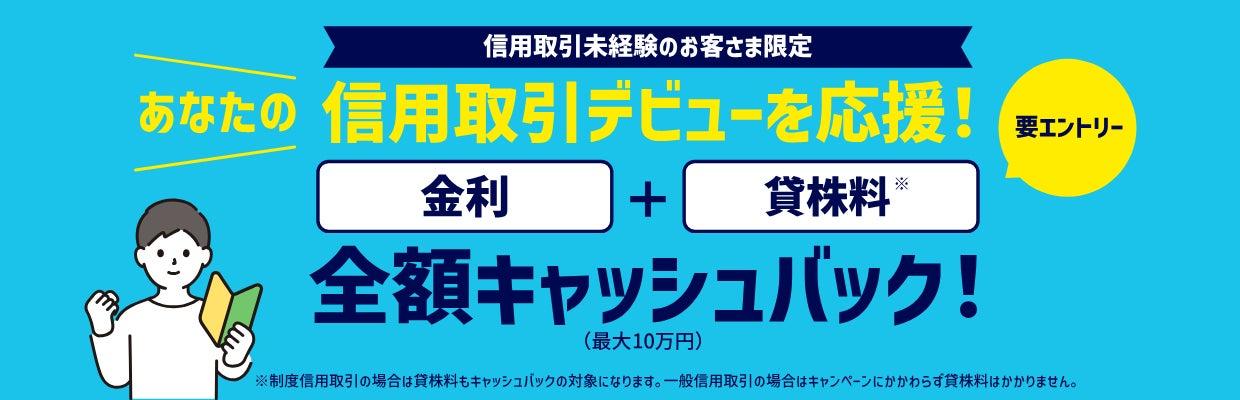 • キャンペーン期間中は制度信用取引や一般信用取引の金利・貸株料を最大10万円まで全額キャッシュバック