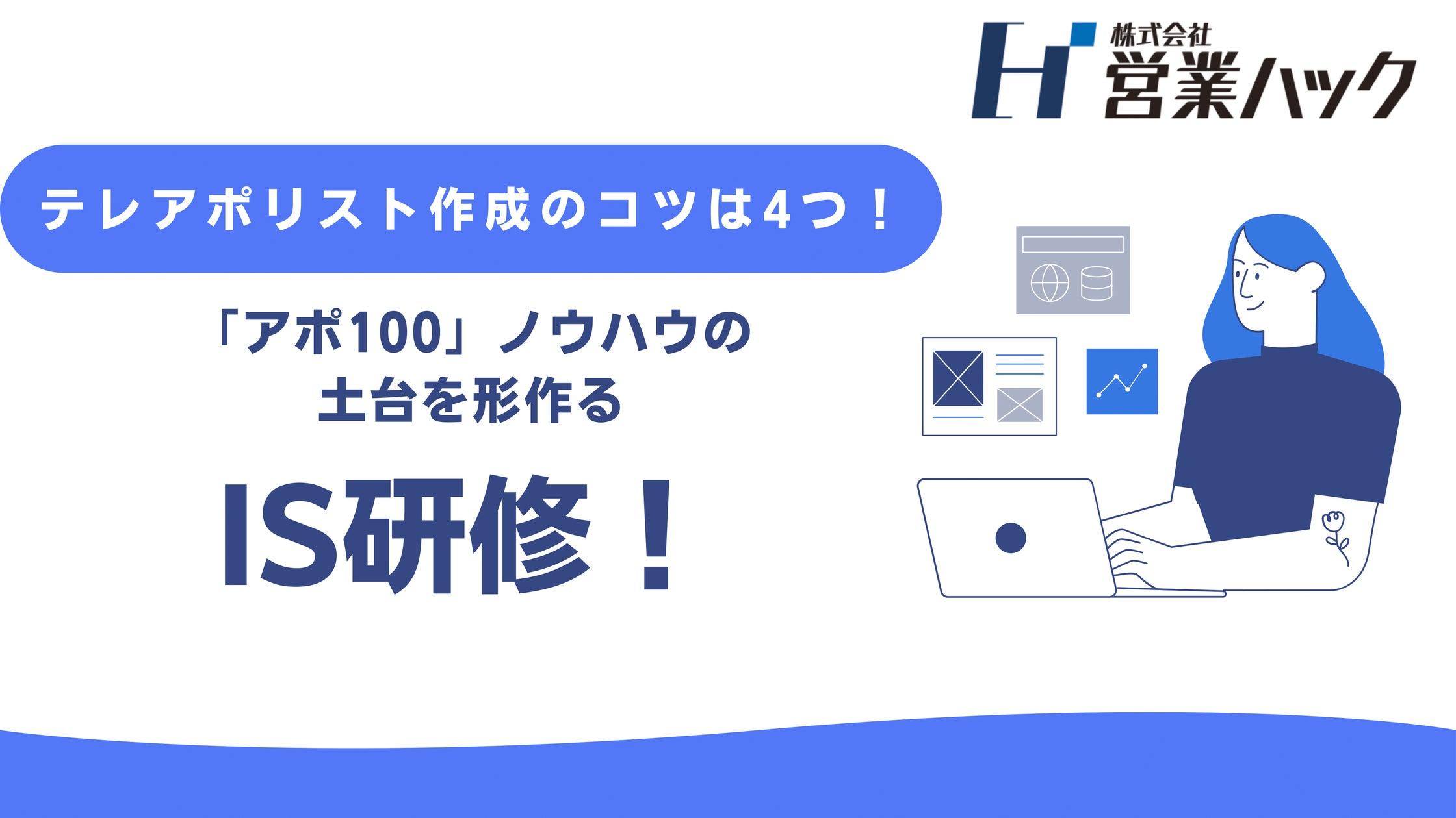 また、営業ハック社は「営業の悩みを0にする」というミッションのもと、様々な企業の営業支援を行っており、今回の研修はその一環として実施されたものです。研修の中では、営業リストの作成方法だけでなく、営業ハック社が提供する完全成果報酬型のテレアポ代行サービス「アポ100」についても紹介されています。