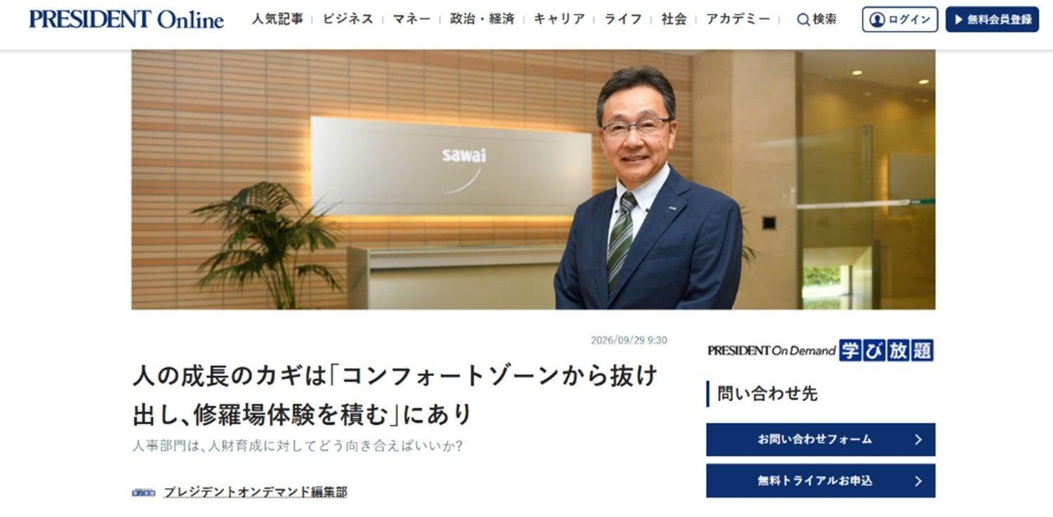 第一弾として「サワイグループホールディングス株式会社」のインタビュー記事が公開されました。同社は、ジェネリック医薬品のトップメーカーとして日本の医療を支える企業で、人的資本経営に向けた具体的な人財戦略にフォーカスしています。社員のオンライン研修サービス「Sawai Web School」の取り組みについても紹介されています。