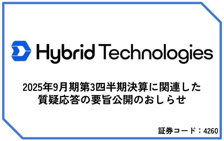 ハイブリッドテクノロジーズは2025年9月期第3四半期決算を発表し、同決算に関連した質疑応答の要旨をウェブサイトで公開しました。